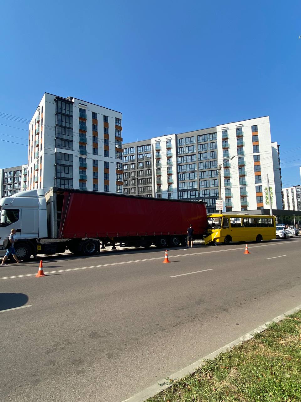 Інцидент трапився сьогодні, 14 серпня. Тоді на вулиці Мазепи неподалік «Сільпо» автобус врізався у вантажівку, припарковану обабіч дороги.