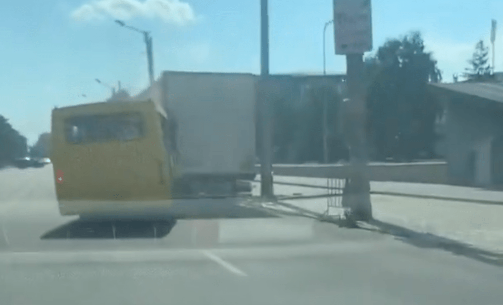 На відео можна побачити, що в аварію потрапила маршрутка №28, а під час зіткнення в ній перебували пасажири. Передня часина автобуса зазнала сильних ушкоджень, повністю розбилося лобове скло.