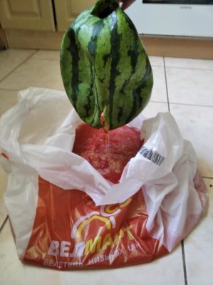 «Обережно! «Велмарт» отруює дітей! Наколотий кавун здувся за ніч!» – написав Олексій.
