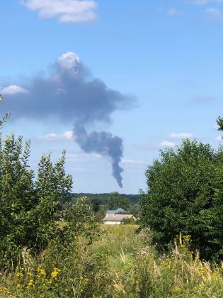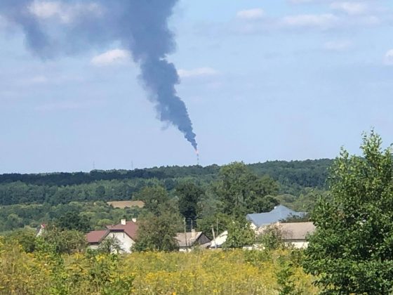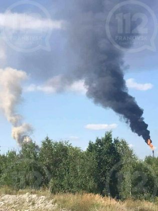 Клуби чорного диму розвіваються на кількадесят метрів в бік Львівщини. У соцмережах користувачі поширюють відео, на якому видно, як горить труба одного з підприємств Калуша.