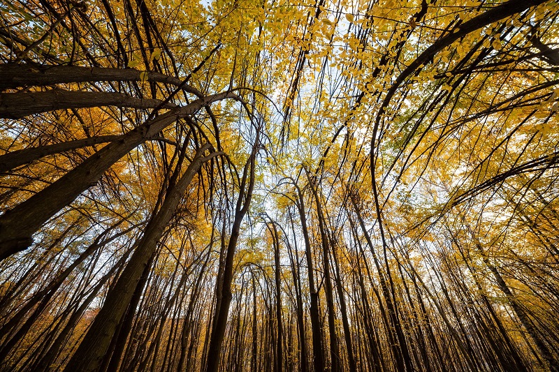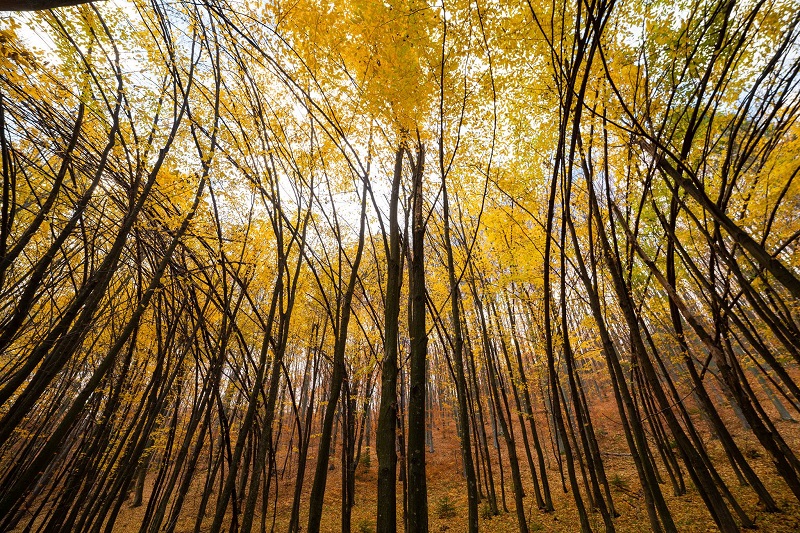 У мережі показали світлини осіннього лісу, у якому дерева мають незвичний вигляд, ніби хиляться до землі.