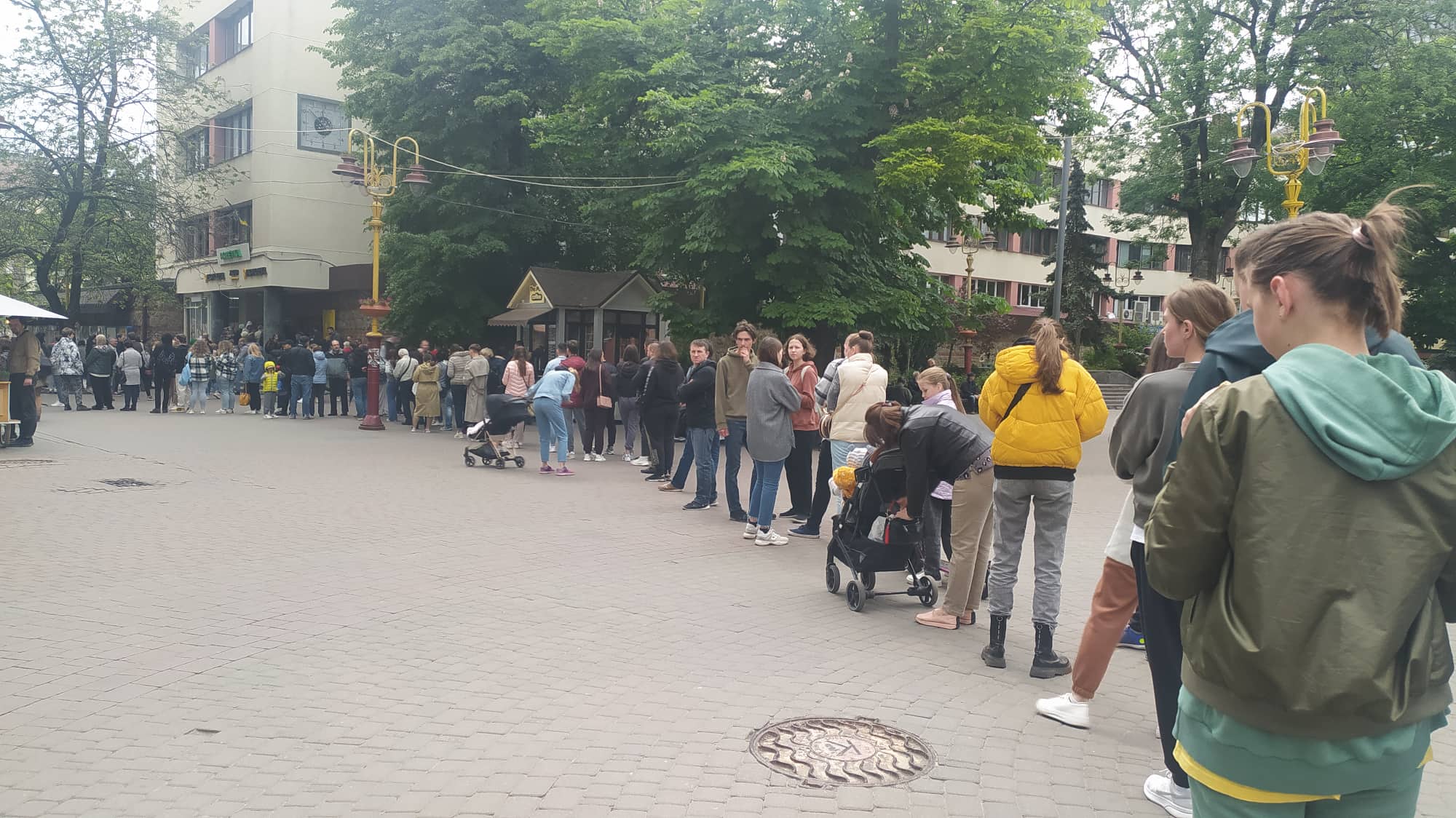 «Станом на 15:45 год 23 травня в зошит вже записалося на чергу 900 людей. І ще десь близько 300 стоять в черзі, щоб записатися. Погашають марку наразі номер 50», – відзначає з місця події кореспондентка Версій.