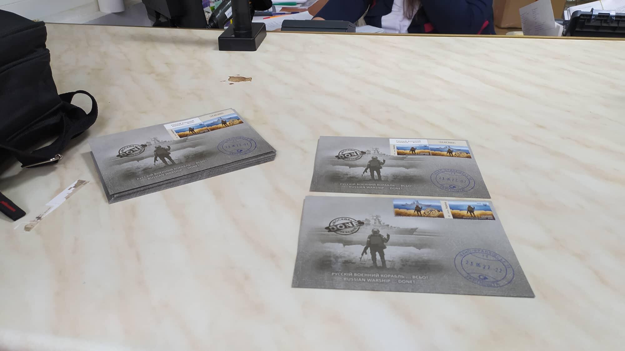 23 травня о 14:00 год. стартував продаж патріотичної поштової марки “Русскій воєнний корабль… ВСЬО!”. Це спричинило чималий ажіотаж в Івано-Франківську. Люди стоять в черзі із більше тисячі бажаючих придбати розрекламовану марку.