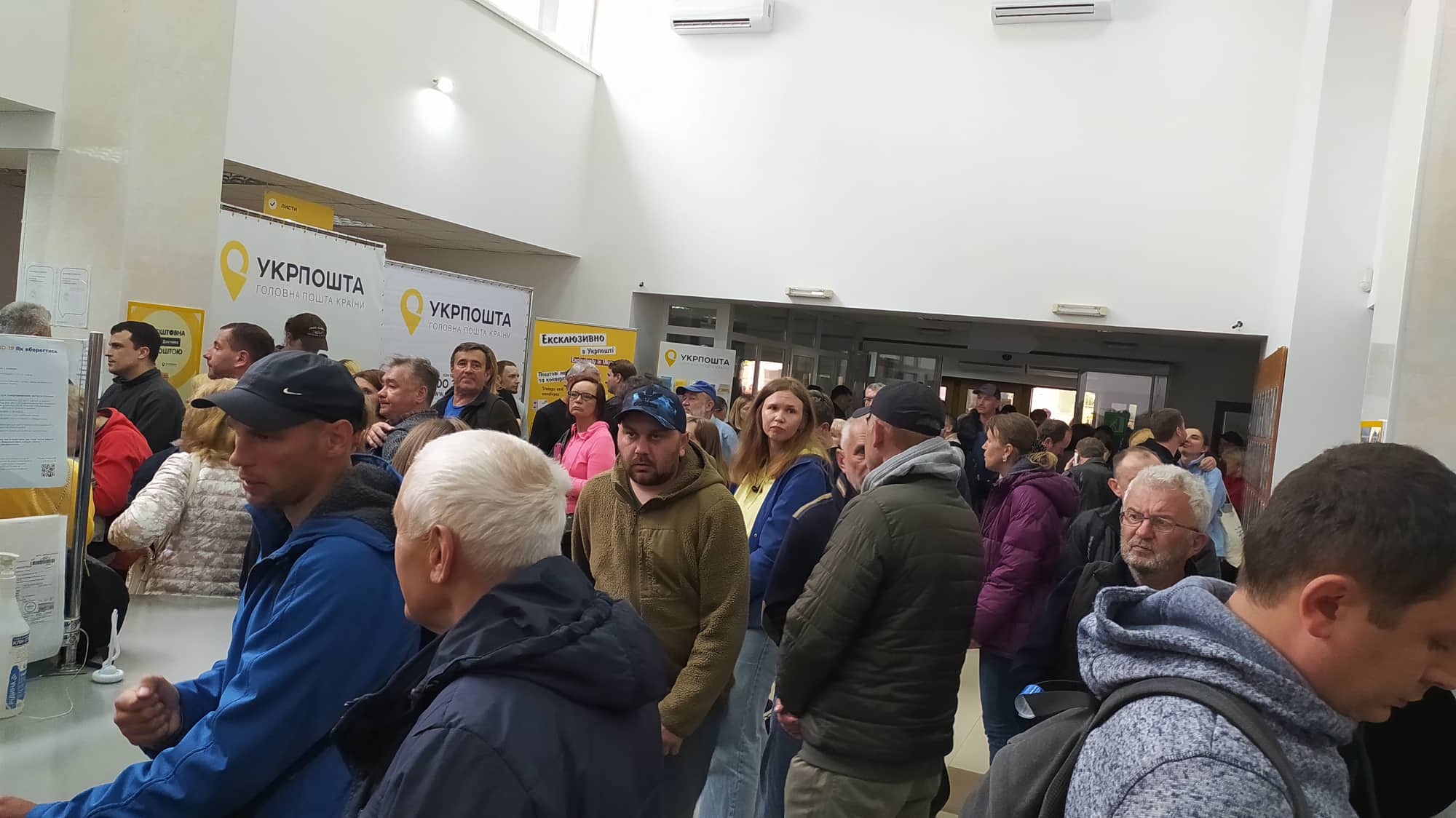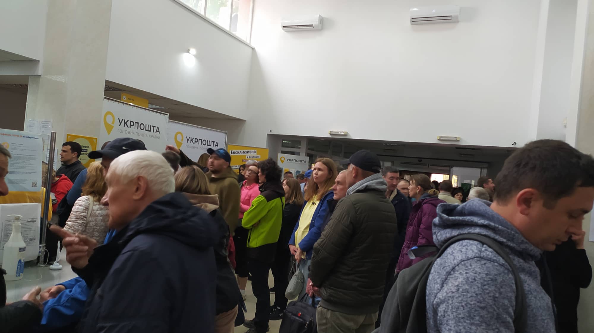Що цікаво, біля центрального відділення «Укрпошти» вишикувалось аж дві черги: є ті, хто зранку записались в список і вже стоять, щоб придати марку. Інші чекають, щоб ще записатися в чергу, пишуть Версії.