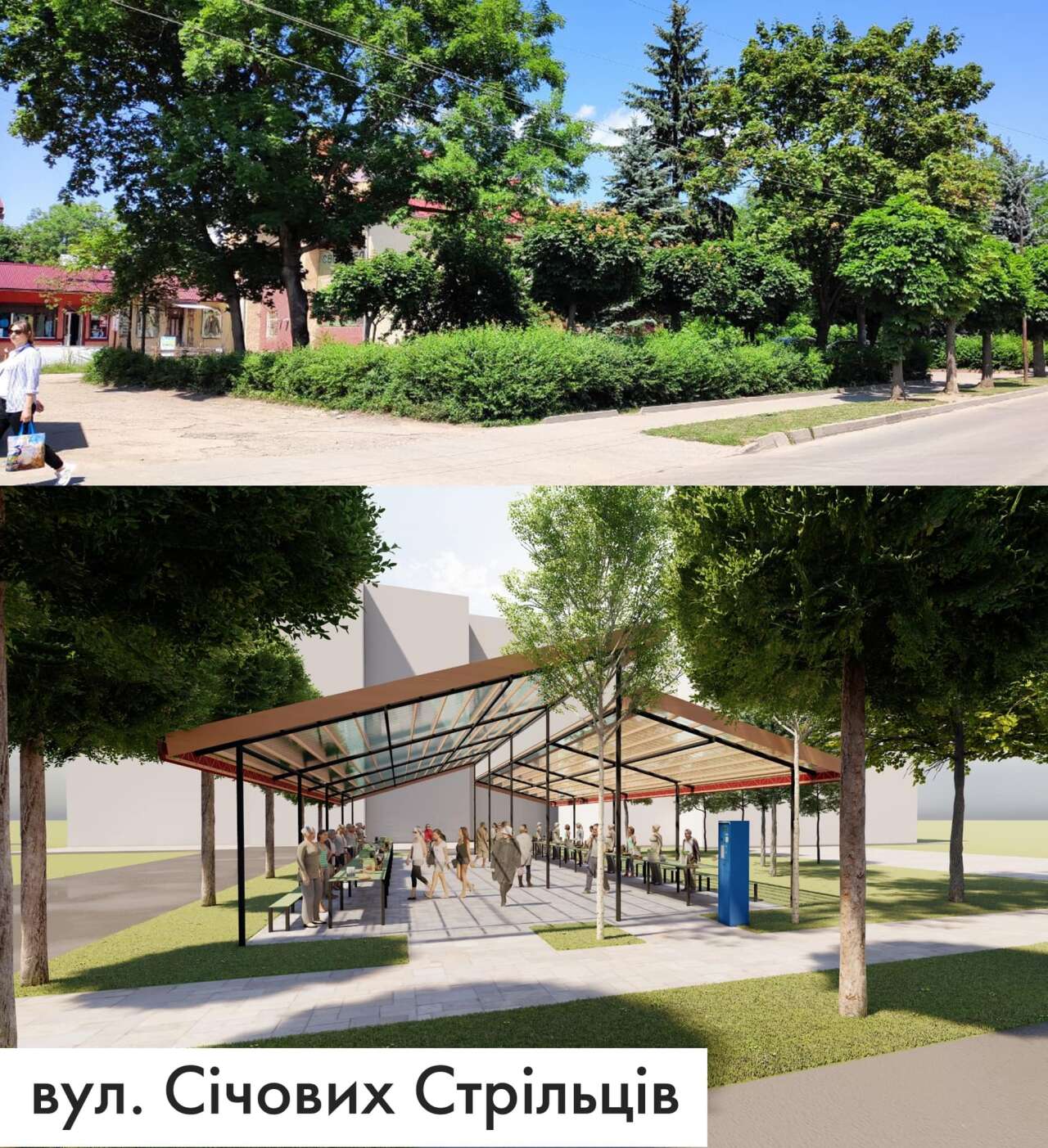 На фото можете побачити ескізи майбутніх облаштованих місць для торгівлі в цих районах. У планах – зробити їх до кінця літа. Що на Бандери, що на Січових Стрільців буде біля 40 торгових місць для продажу продовольчих товарів. Людям не доведеться тримати продукти на землі та створювати незручності для пішоходів. А виїзна лабораторія Держпродспоживслужби матиме змогу перевіряти продукти на цих ринках.