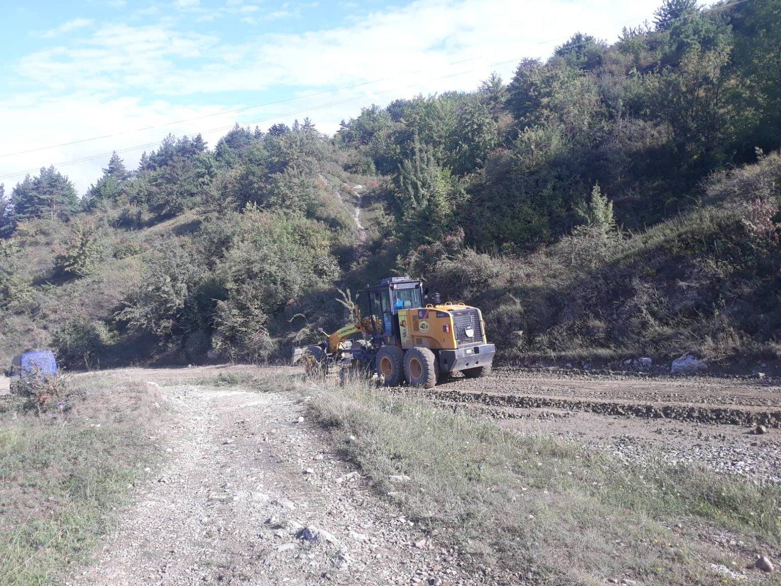 Як видно з фото, на місці активно працює грейдер, а дорога через Вовчинецьку гору перекрита для проїзду автомобілів.