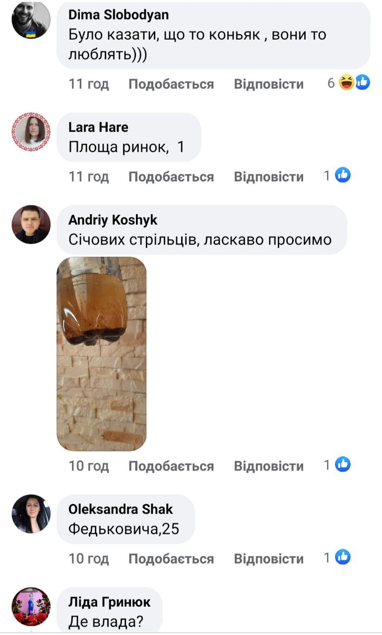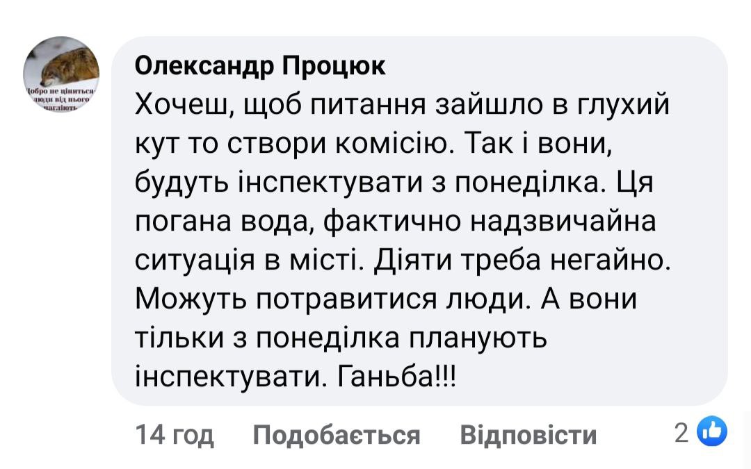 «Подарував нині Фармусу трохи файної тисменицької води з крана. Каже: були якісь прориви, але думав вже все вирішили і не знав, що багато, де така вода. З понеділка, кажуть, будуть їхати інспектувати», – ділиться чоловік.