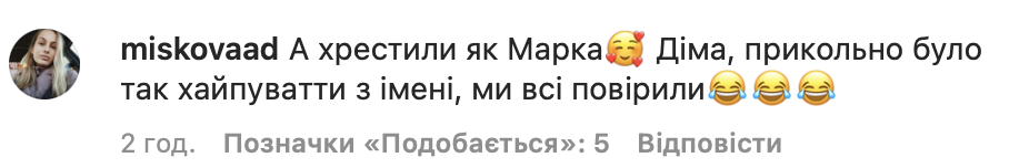 В коментарях під публікацією справжній шквал емоцій від підписників! Більшість не розуміє та не підтримує такого вибору. Хоча обговорюють, що хрестили малюка іменем Марко.
