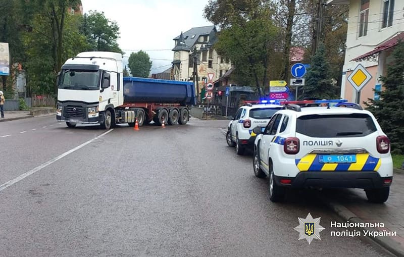 Попередньо правоохоронці встановили, що 68-річний мешканець Надвірнянського району, керуючи вантажним сідловим тягачем «RENAULT», виїжджаючи з другорядної дороги на головну, здійснив наїзд на жінку.
