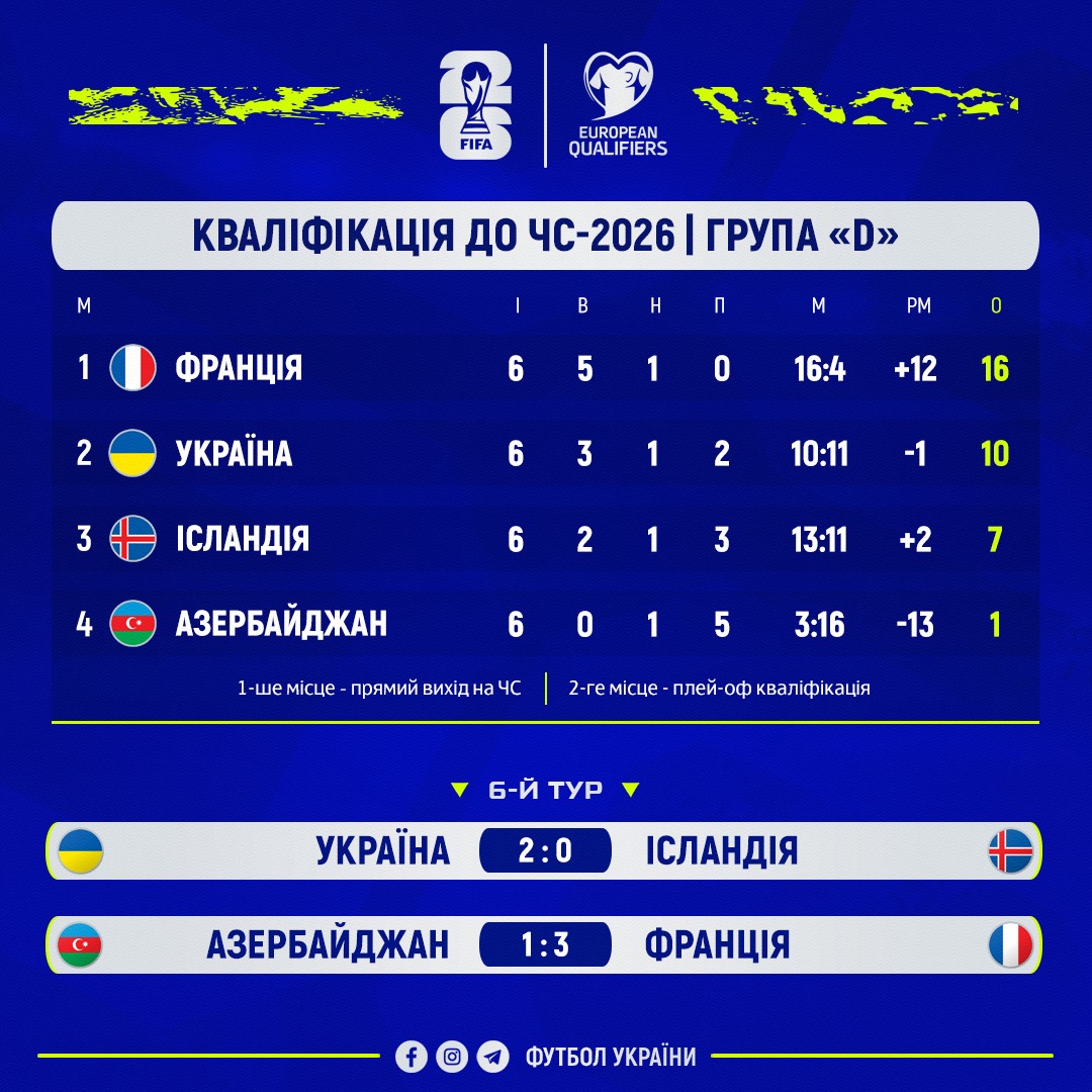 У вирішальному протистоянні групового етапу кваліфікації до Чемпіонату світу 2026 року команда Сергія Реброва обіграла Ісландію з рахунком 2:0.