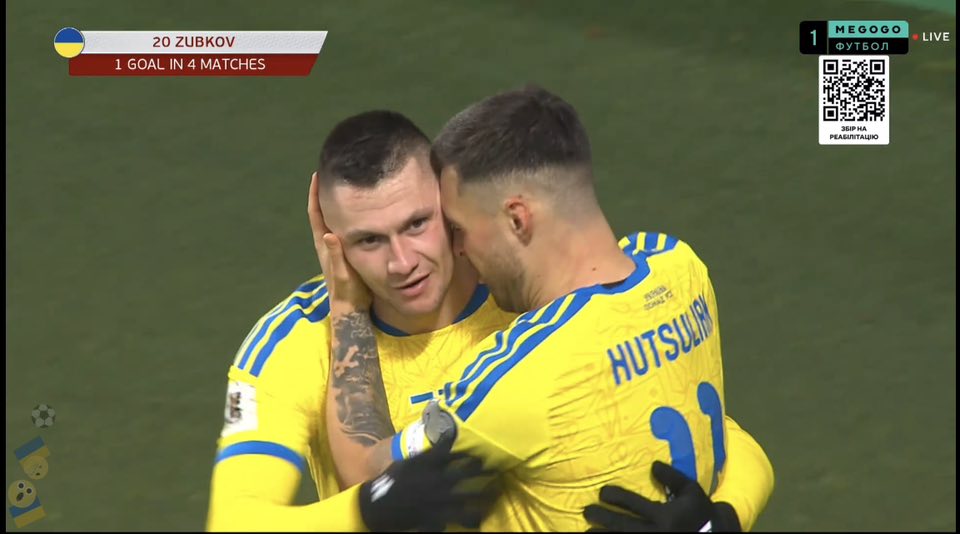 Атака, що почалася з небезпечного моменту Яремчука (хоча його удар і був відбитий), емоційно “завела” українських гравців. І на 83-й хвилині збірна реалізувала стандарт: після кутового з правого флангу Гуцуляк на ближній стійці воротарського майданчика майстерно переправив м’яч до дальньої штанги, де Олександр Зубков без перешкод замкнув головою – 1:0!