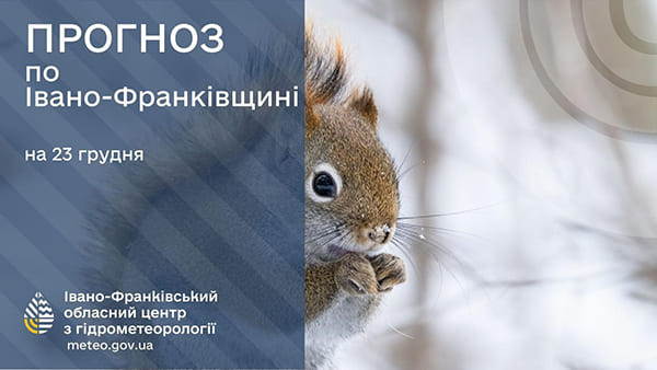 У вівторок, 23 грудня, у місті Івано-Франківську та Івано-Франківській області хмарно з проясненням. Вночі без опадів, вдень невеликий сніг.